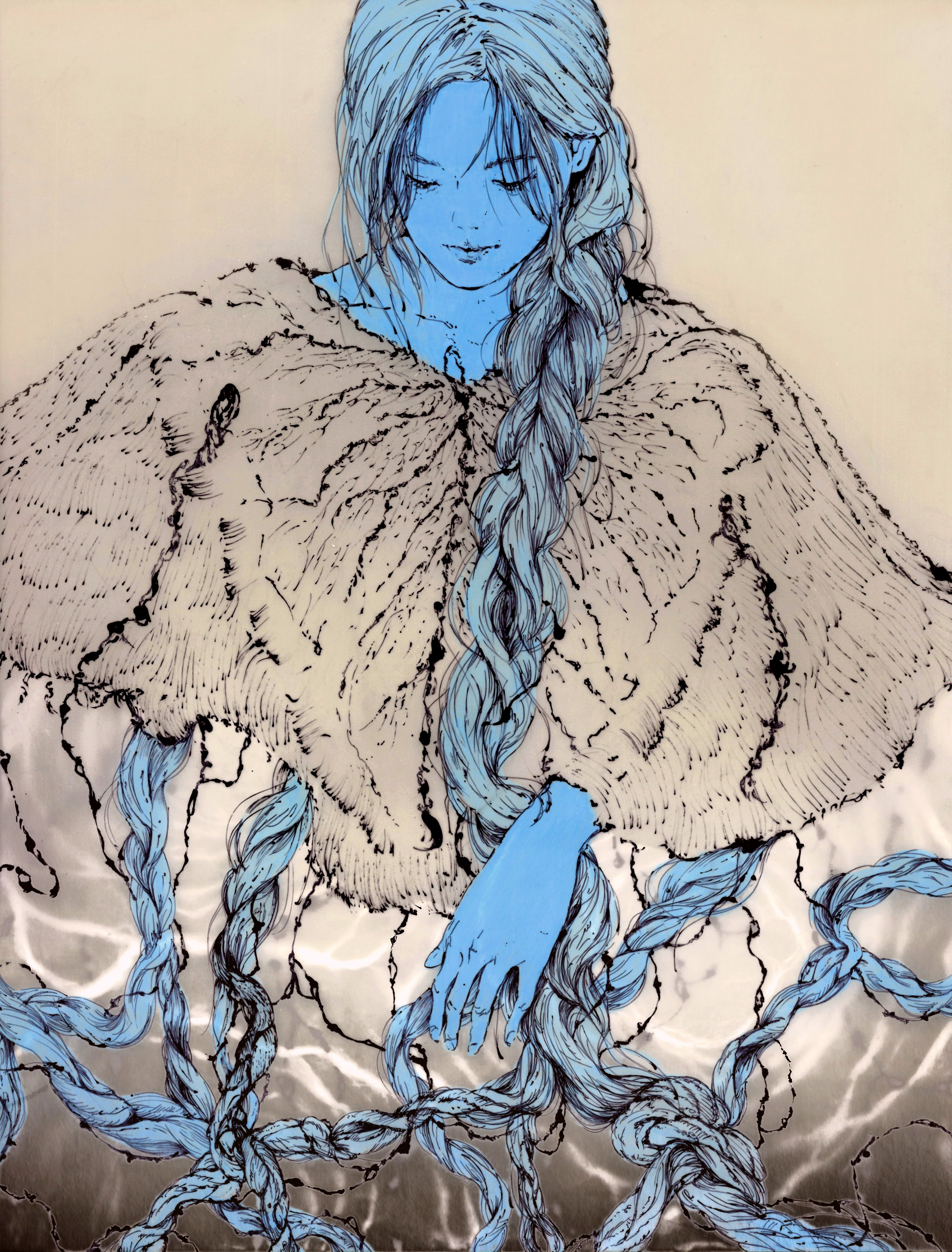 Calamity, interrogation, karma, end, and knot—all share the sound “jiē” in Chinese, a singular resonance binding distant flavors of experience. Hair braiding seen as a form of “jiē”, a vessel of memory and sentiment. It bears the touch of loved ones, growing steadily from past to present. In the weaving of strands, these “jiē” are inseparable.