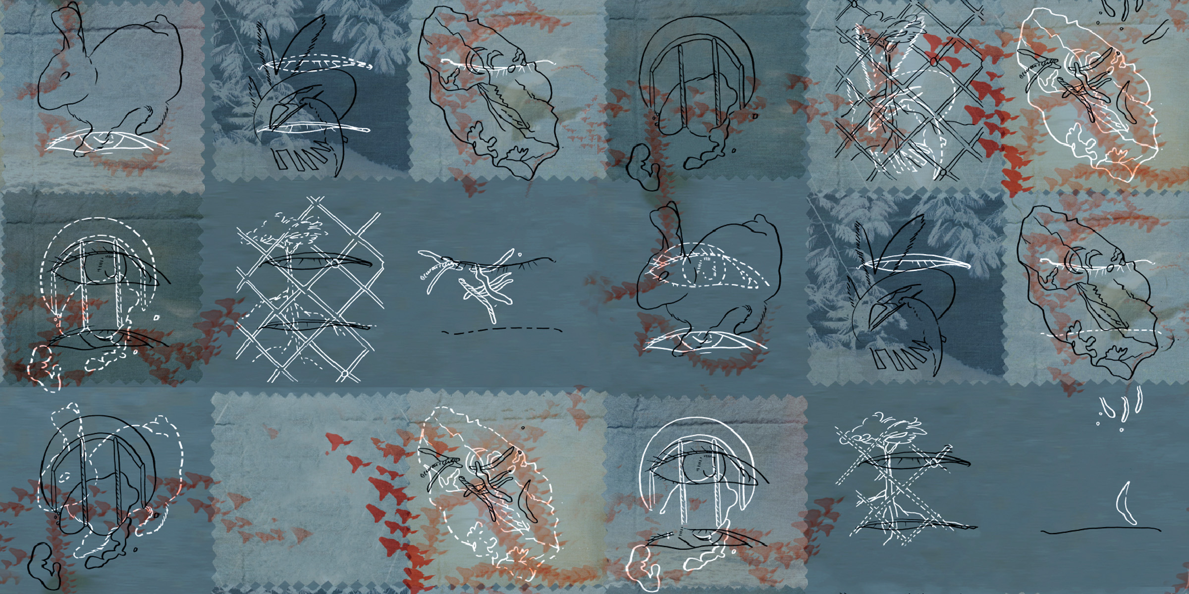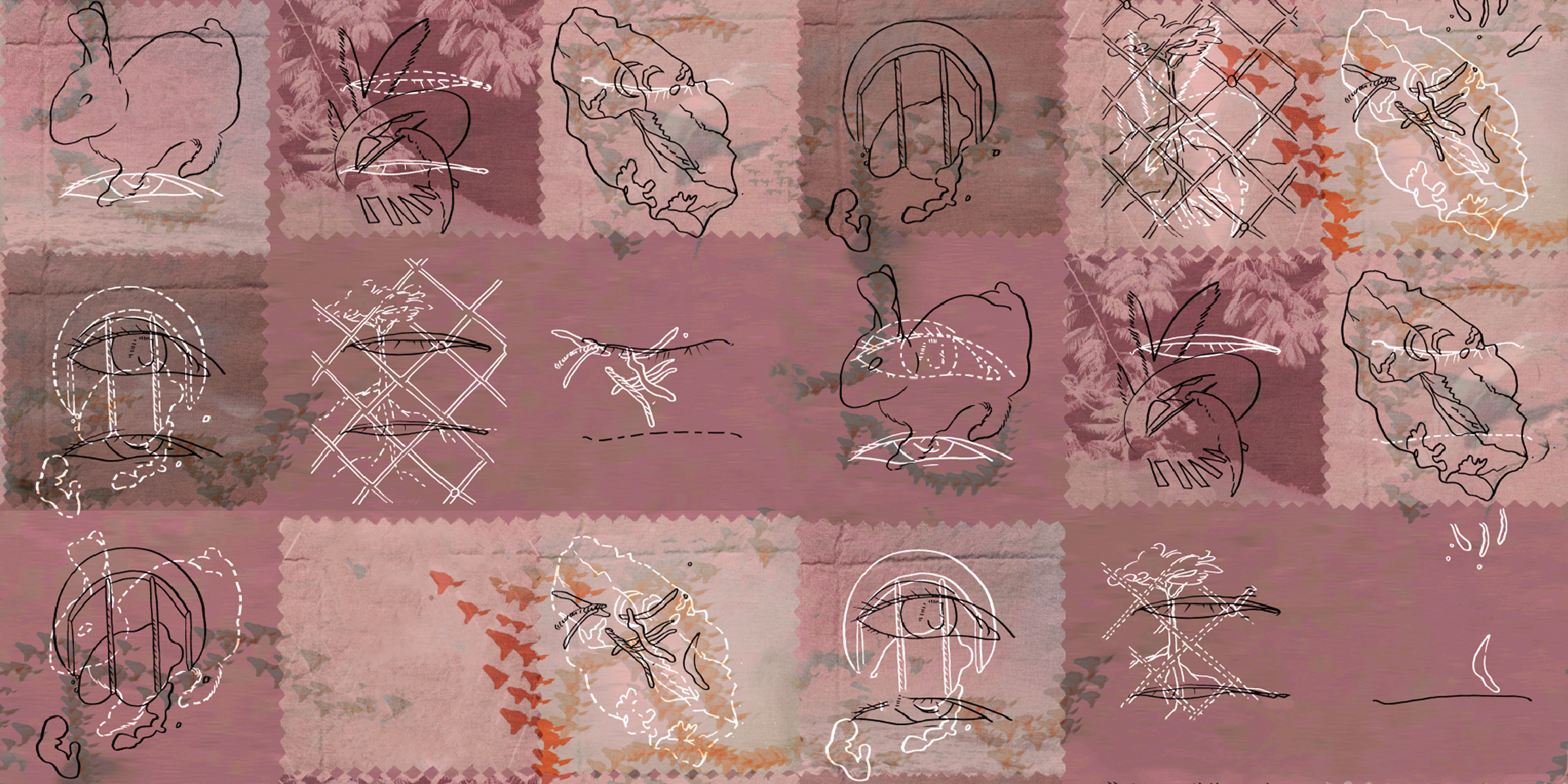 hand embroidery on clear film acetate, mix media & repeat pattern design | 2023